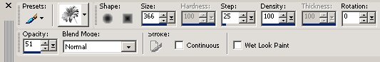 ***************** INSTRUCTIONS Open a new canvas 400 x 400 pixels background white Layers >> Promote Background Layer In the Materials Palette load Black #000000 into Background Select Paint Brush Tool Find brush tip yp_flowerbasket02_brush