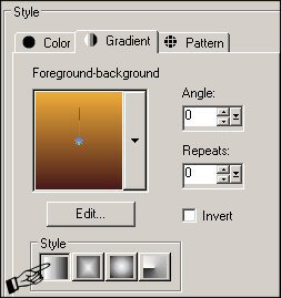 ********** STEP 1 Open a new canvas 800 x 600 pixels transparent background STEP 2 In the Materials Palette load Foreground with Brown #481918 and Background with Orange #EEAB39 Make a Foreground-Background gradient Style = Linear